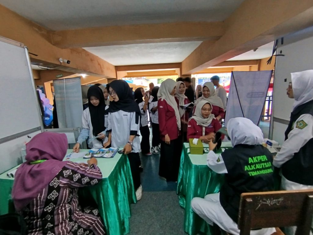 Dalam kesempatan tersebut, Akper Alkautsar Temanggung membuka stand informasi pendidikan untuk memperkenalkan program studi keperawatan, sistem pembelajaran, serta peluang karier di bidang kesehatan kepada para pengunjung. Antusiasme siswa terlihat tinggi dalam menggali informasi seputar dunia perkuliahan dan profesi perawat.