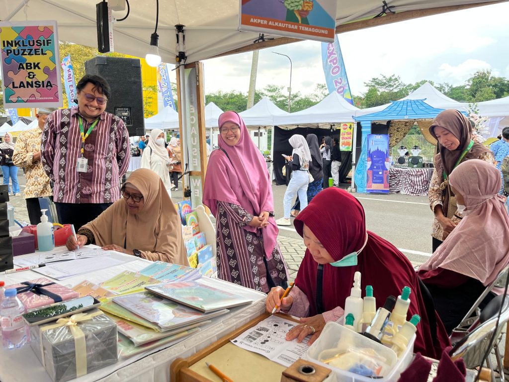 Salah satu momen menarik dalam pameran tersebut adalah partisipasi langsung Dr. Dra. Eny Boedi Orbawati, M.Si., yang mencoba tantangan permainan “Teka-Teki Lansia” di stan pameran Akper Alkautsar Temanggung.